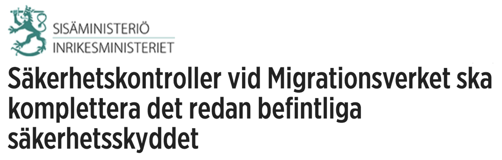 En ny lag gällande säkerhetsskyddet vid Migrationsverket bereds som bäst vid Inrikesministeriet. I lagen ska det föreskrivas om befogenheterna för säkerhetskontrollörer som utför säkerhetsuppgifter i lokaler som Migrationsverket använder. Säkerhetskontroller redan före kundmöten skyddar personalen vid Migrationsverket mot olika riskfaktorer, tryggar arbetsförhållandena, skyddar verkets egendom och kunna ingripa i eventuella säkerhetshot med framförhållning.